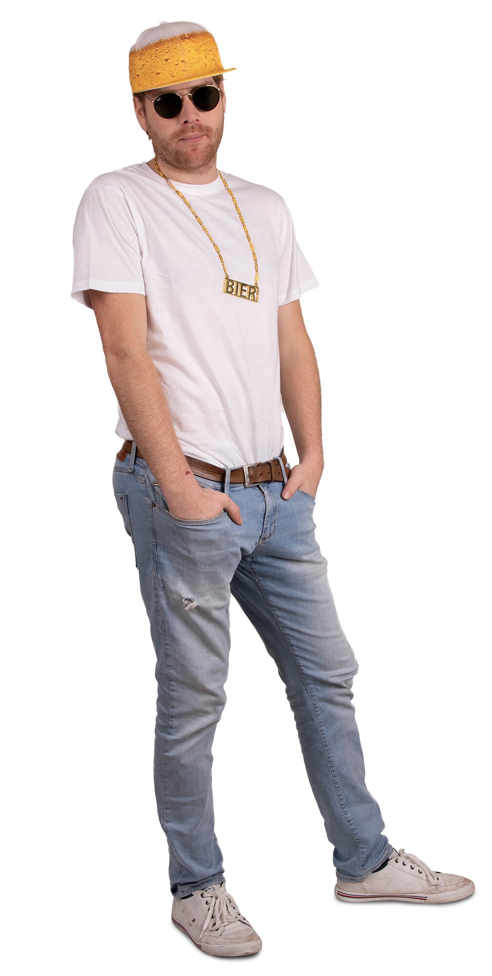 Goldfarbene Kette mit dem Schriftzug BIER.