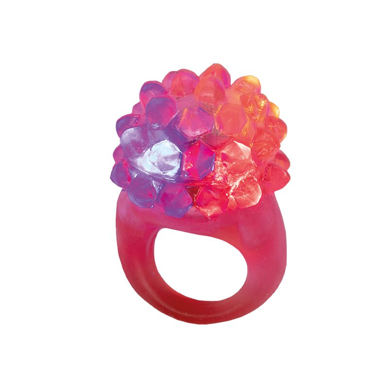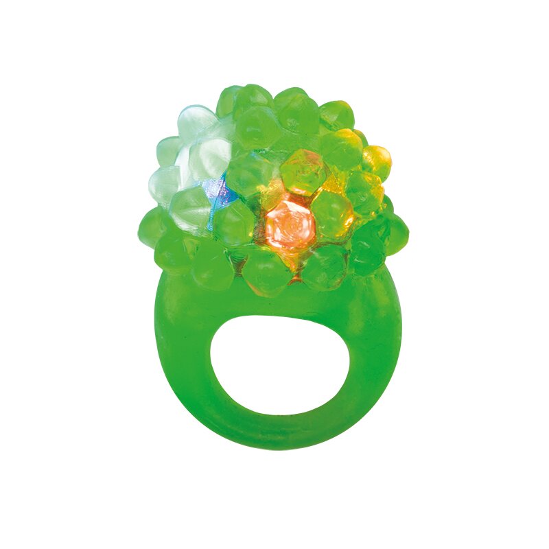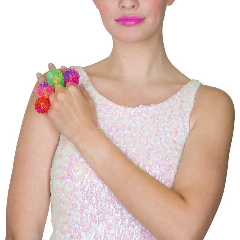 Set bestehend aus vier Ringen in unterschiedlichen Farben. Die Ringe sind kugelförmig, mit einem Noppenbesatz gestaltet und blinken auf Knopfdruck.