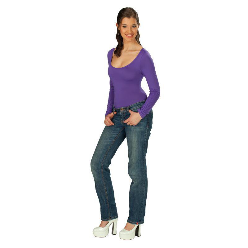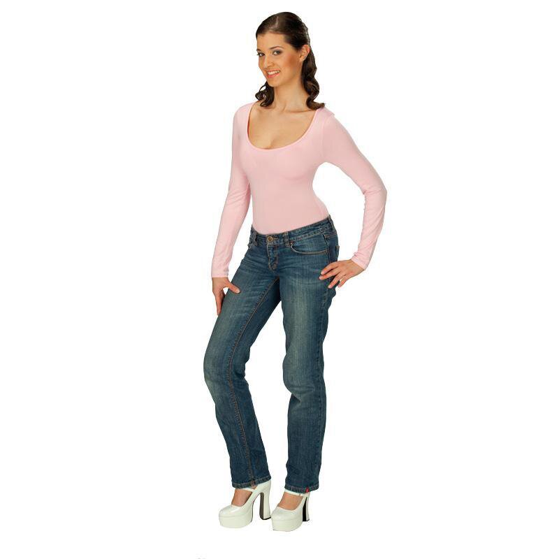 Langärmeliger Body in verschiedenen Unifarben mit weitem Ausschnitt und Druckknopfverschluss im Schritt.