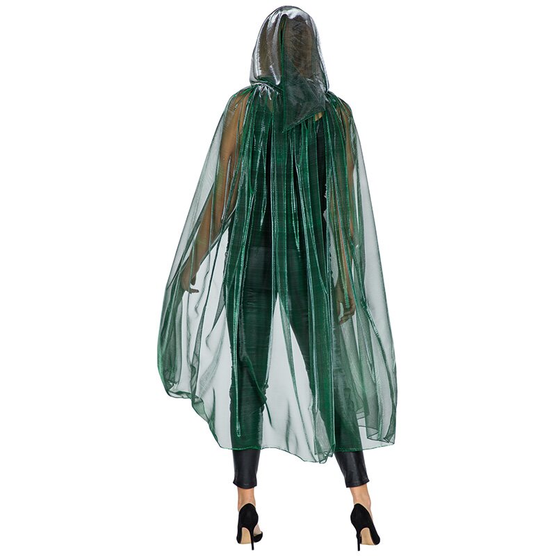 Langes Kapuzencape aus grün-glitzerdem Chameuse.