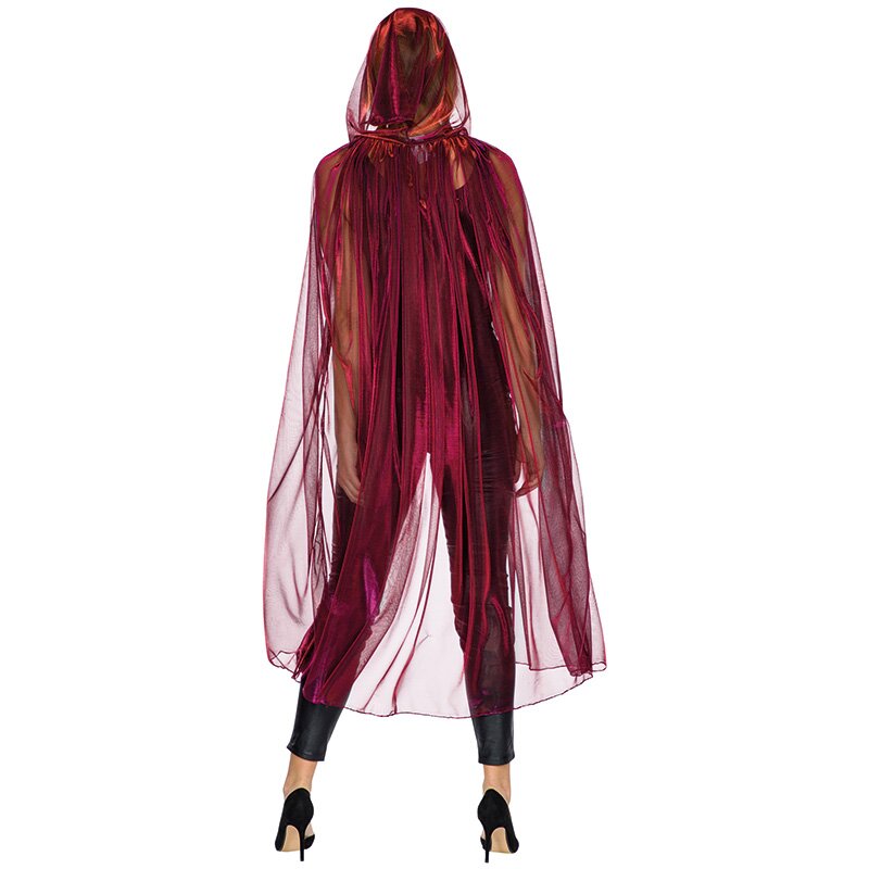 Langes Kapuzencape aus rot-glitzerdem Chameuse.