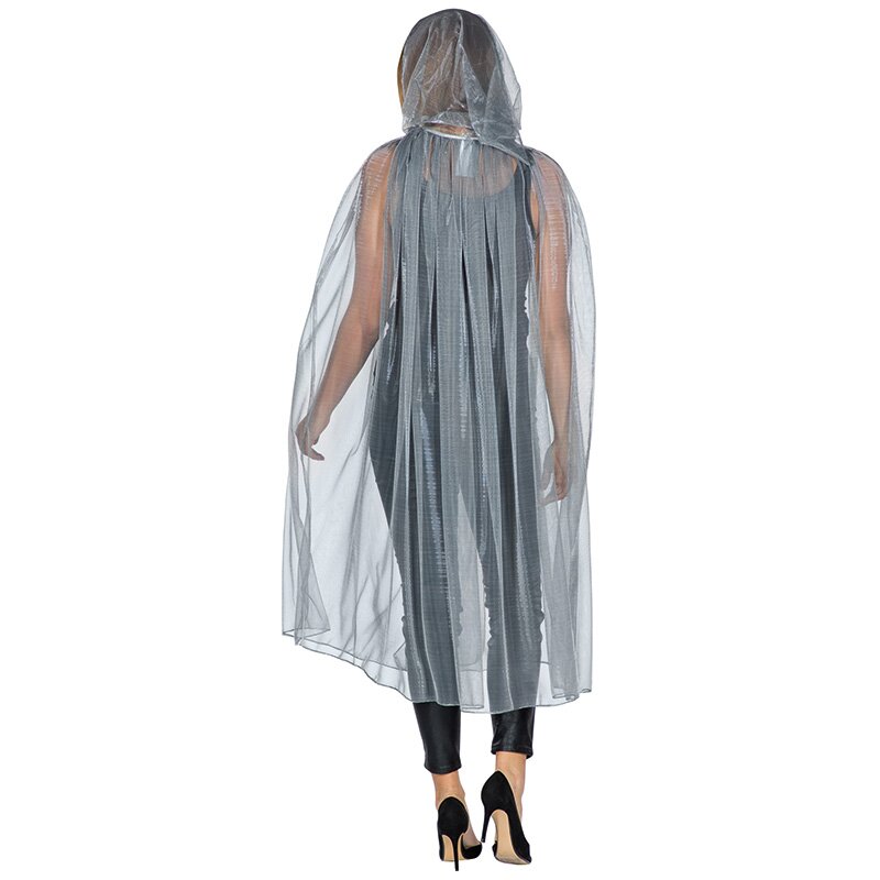 Langes Kapuzencape aus silber-glitzerdem Chameuse.