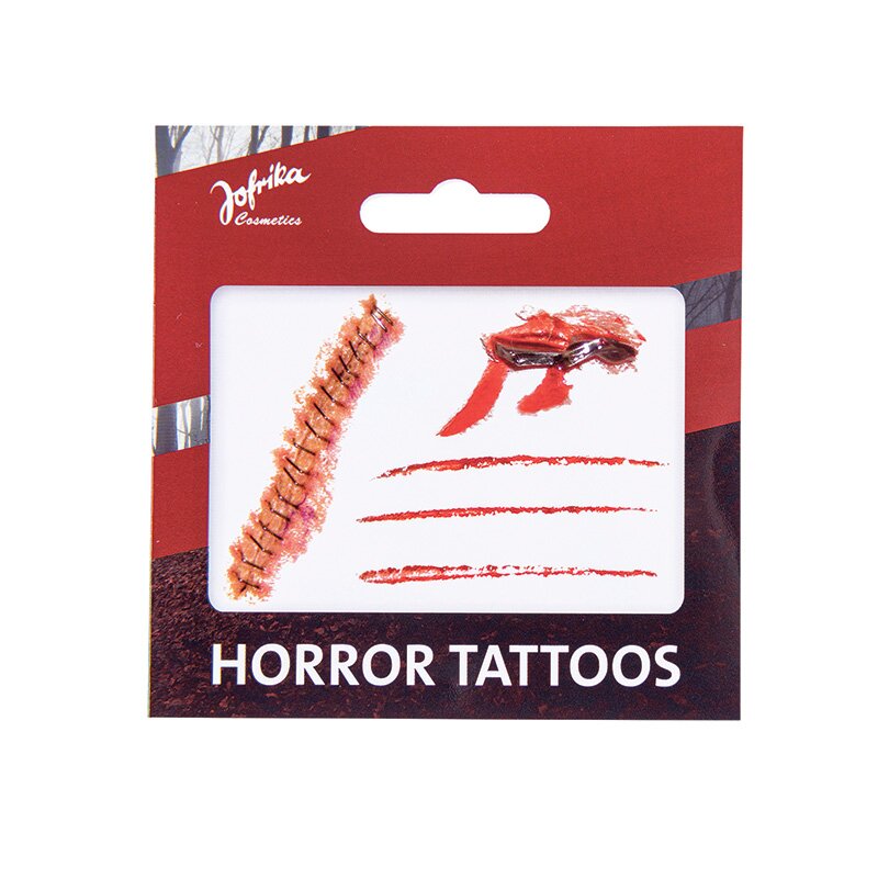 Wasserlösliche Tattoos mit blutigen Designs in Form von Wunden.