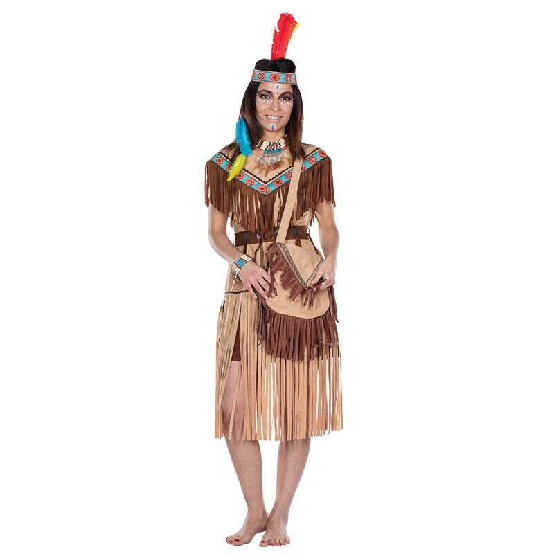 Hellbraune Umhängetasche mit dunkelbraunem Fransenbesatz und Zierborte.
