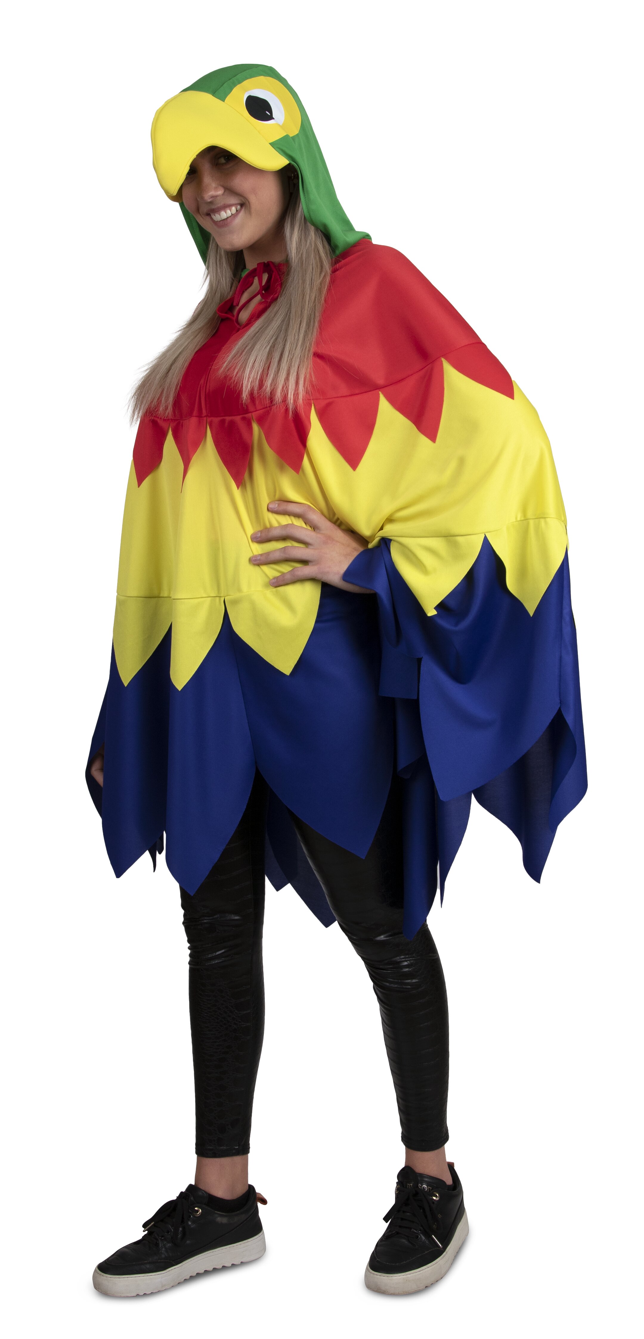 Lustiger Papageien-Poncho mit als Vogelkopf gestalteter Kapuze. Perfekt als Paarkostüm und zum Überziehen im Straßenkarneval!