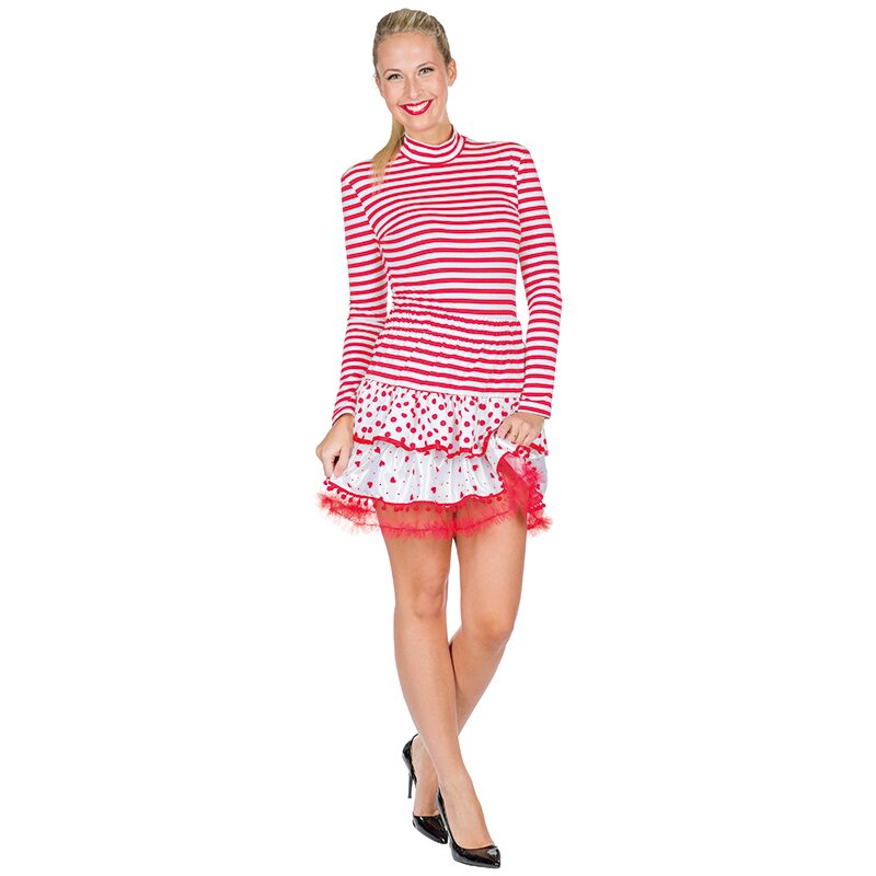 Langärmliger, rot-weiß gestreifter Body.