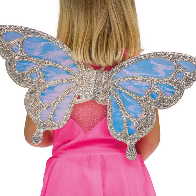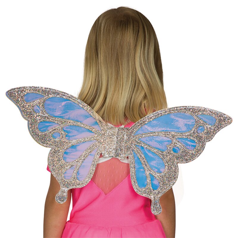 Irisierende Schmetterlingsflügel mit einem Muster aus silbernem Glitter. Maße: ca. 50 x 26 cm