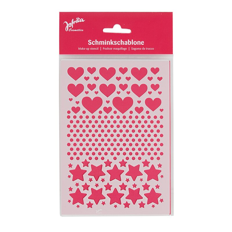Schablone zum Schminken von Herzchen-, Sternen- und Punktemustern.