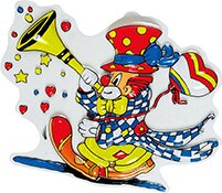 Drei Tiefziehbilder aus PVC mit verschiedenen Clownmotiven.