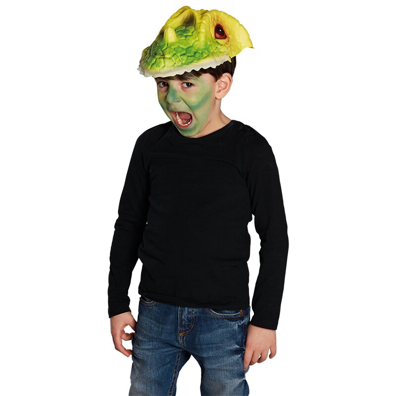 Kindermaske aus Weichschaum, die den Kopf eines Dinosauriers darstellt.