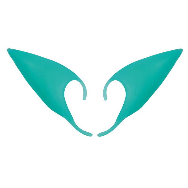Spitze Elfenohren aus türkisfarbenem Kunststoff, die über die eigenen Ohren gestülpt werden.