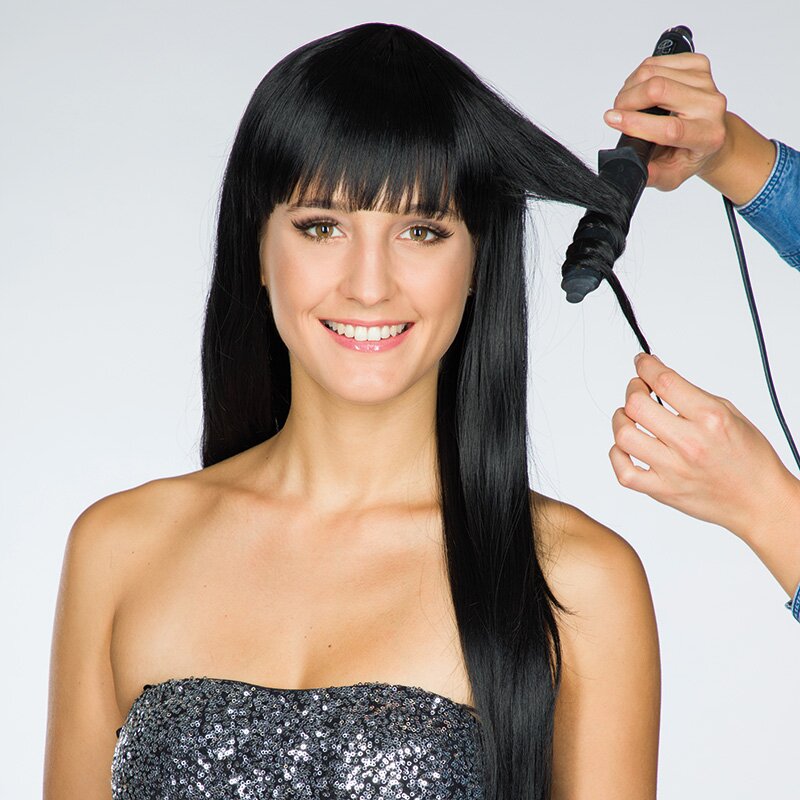 Glaetten: 1. Perücke mit grobzinkigem Kamm kämmen.2. Glaetteisen auf maximal 150 Grad erhitzen. 3. Schmale Strähnen abteilen und langsam mit dem Glaetteisen drüberfahren. Der Glaettvorgang kann bis zu dem gewünschten Ergebnis wiederholt werden.4. Glatte Haare nach Belieben frisieren.Locken/Wellen: 1. Perücke mit grobzinkigem Kamm kämmen. 2. Lockenstab auf mittlere Stufe (maximal 150 Grad) stellen/erhitzen. 3. Schmale Strähnenabteilen, eindrehen und kurz erhitzen. Mit einer Haarklammer festecken und abkühlen lassen.4. Im Anschluss die abgekühlten Haarsträhnen lösenund nach Belieben frisieren.