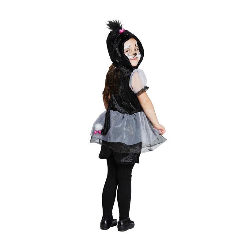 Schwarzes Kleid, auf dessen angenähter Kapuze Katzenohren und eine Haartolle befestigt sind. Die kurzen Puffärmel sind aus durchsichtigem weißen Tüll. Auf der Vorderseite ist ein weißer Einsatz mit einer rosa Zierschleife, sowie Pfotenabdrücke angebracht. Der Rock hat zwei zusätzliche Tülllagen in schwarz und weiß. Auf der Rückseite ist ein schwarzer Katzenschwanz mit weißer Spitze angenäht.