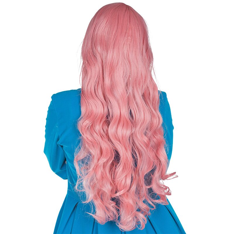 Altrosa Langhaarperücke mit Pony und Wellen in der Länge.