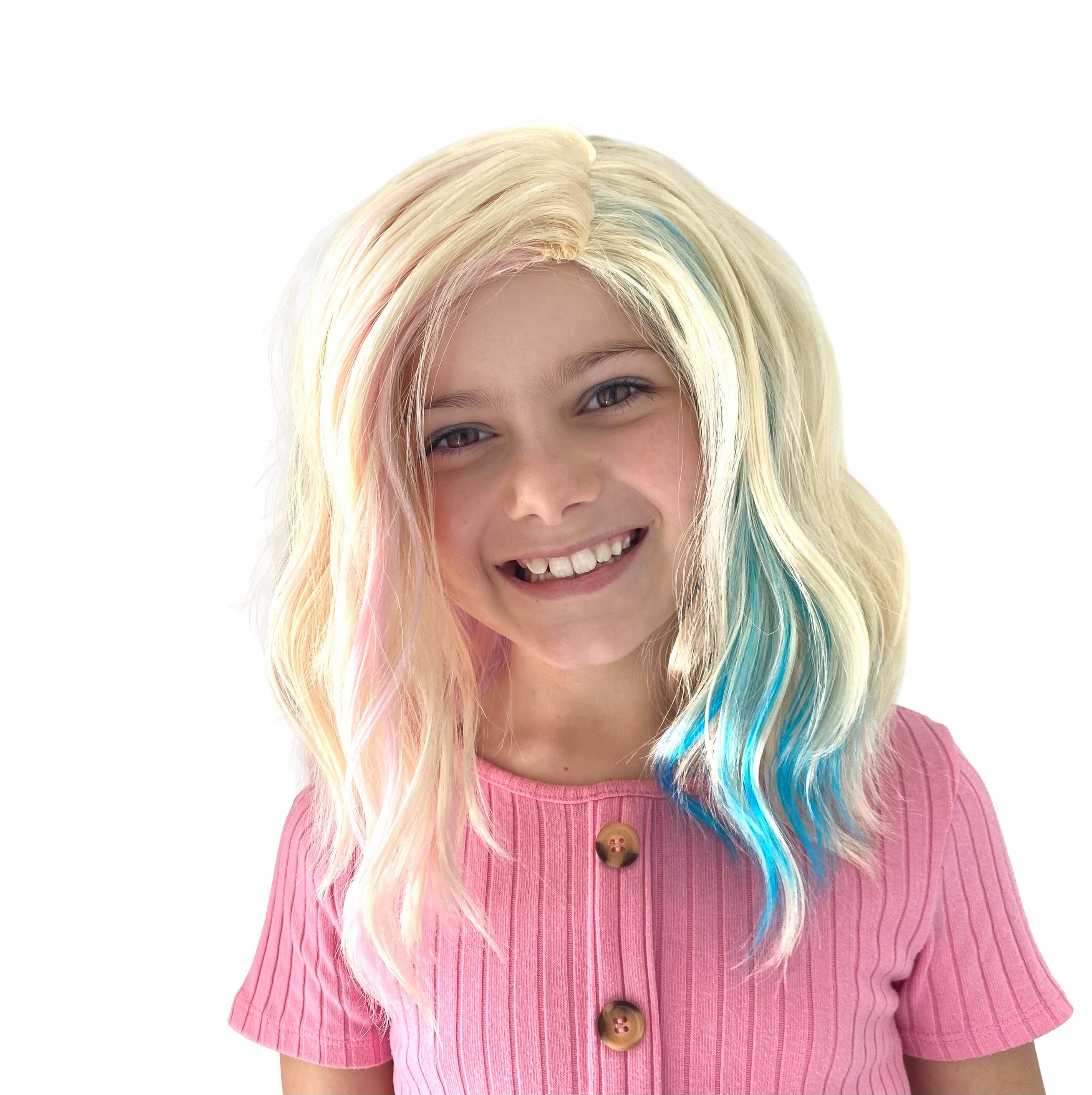 Werwolf oder doch eine andere Fantasiegestalt? Diese blonde Perücke mit pastellfarbenen Strähnen in Rosa und Türkis verwandelt Dich sofort! Dank Gummizug im Haarnetz tragbar für Erwachsene und Kinder.