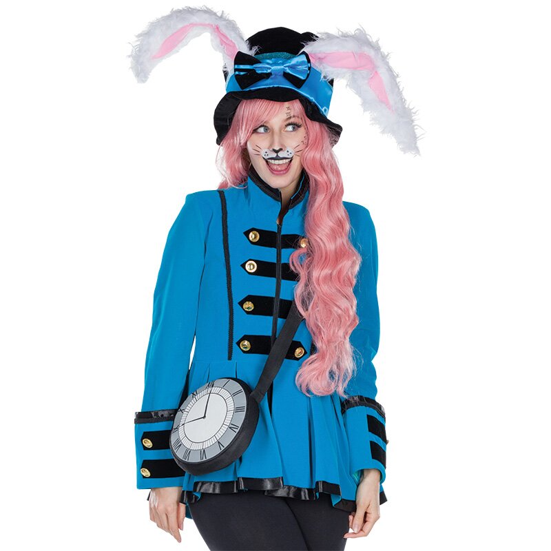 Schwarze Umhängetasche in Form einer runden Uhr. Das weiße Ziffernblatt hat einen grauen Rand, auf dem die Zahlen in römischen Ziffern aufgedruckt sind. Die Tasche hat einen Reißverschluss.
